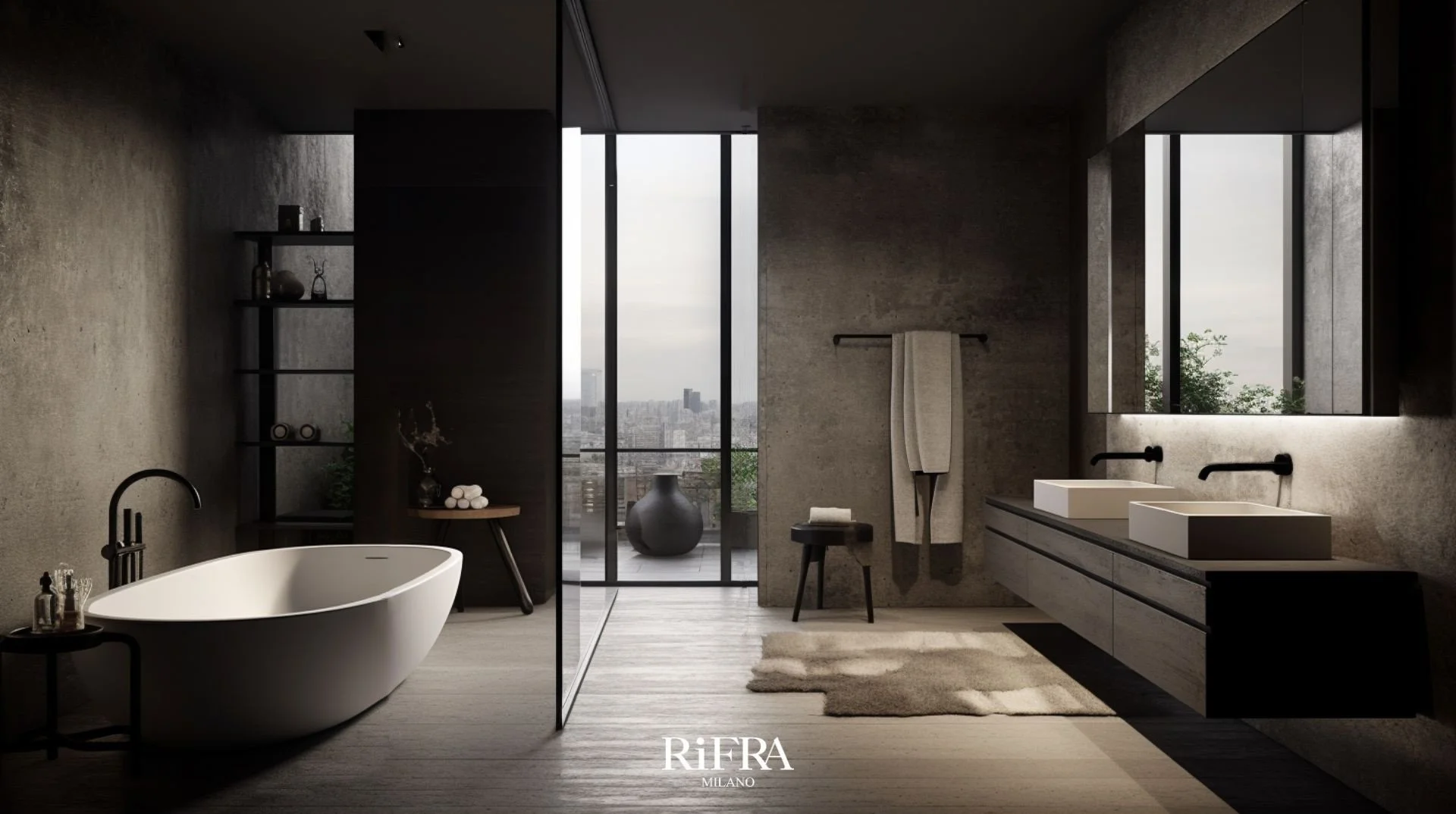 La salle de bain RiFRA est une oasis de tranquillité et de luxe, où matériaux précieux et solutions innovantes se fondent pour créer un véritable environnement de spa domestique.