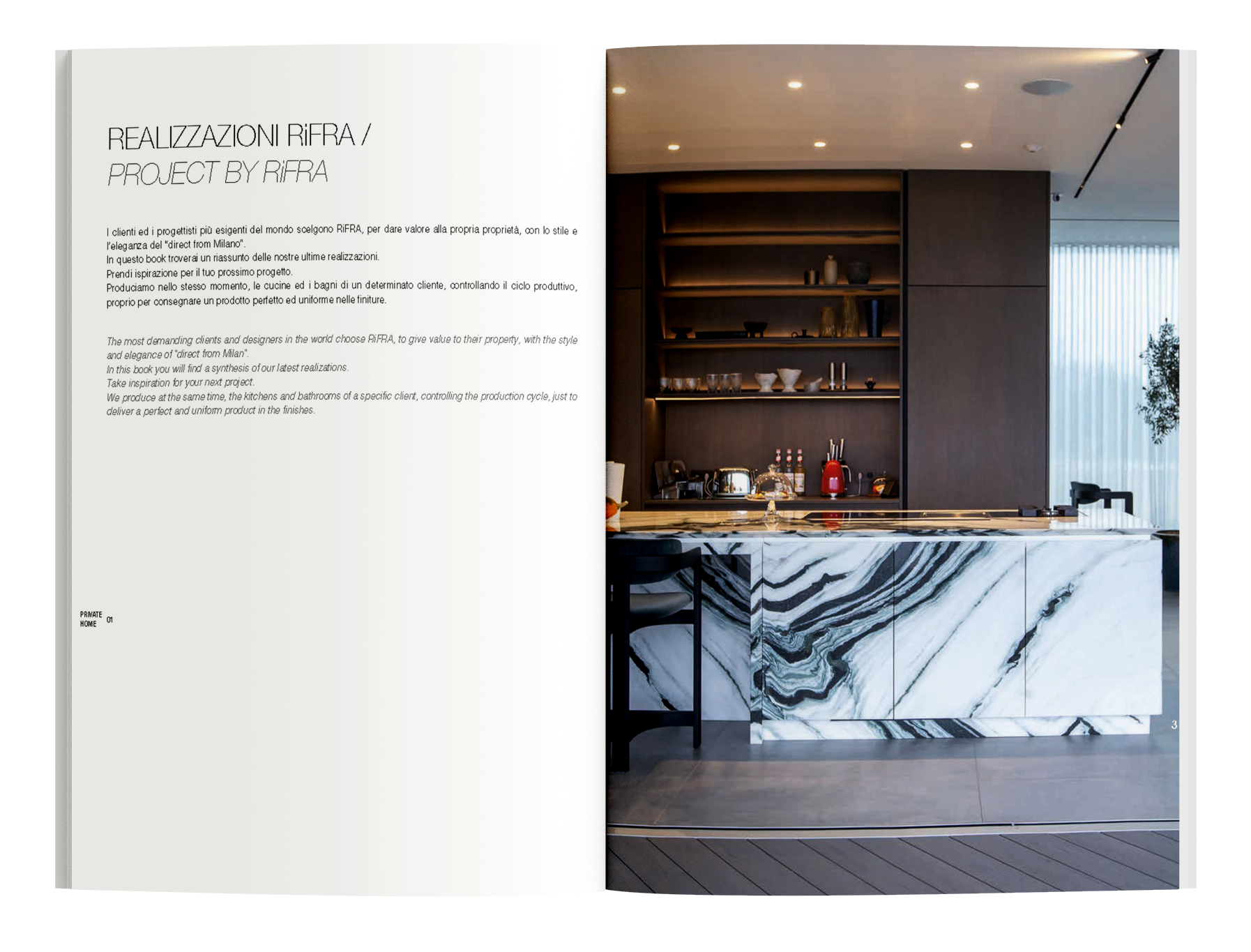 Découvre les plus belles réalisations de cuisines et de salles de bains de luxe grâce à notre e-book gratuit « Private Space Home 01 ». Avec plus de 500 pages de photos, tu plongeras dans un monde de cuisines et de salles de bains design installées dans des villas, des appartements et des lofts exclusifs du monde entier. Laisse-toi inspirer pour ton prochain chez-soi et découvre pourquoi de plus en plus de personnes choisissent d'aménager avec le design unique et exclusif de RiFRA.